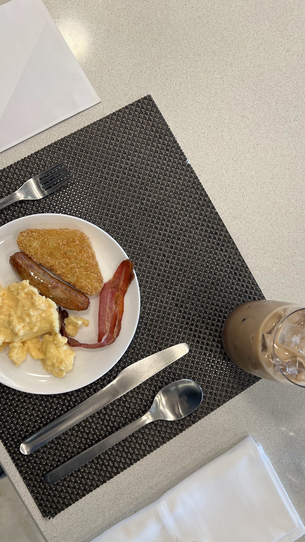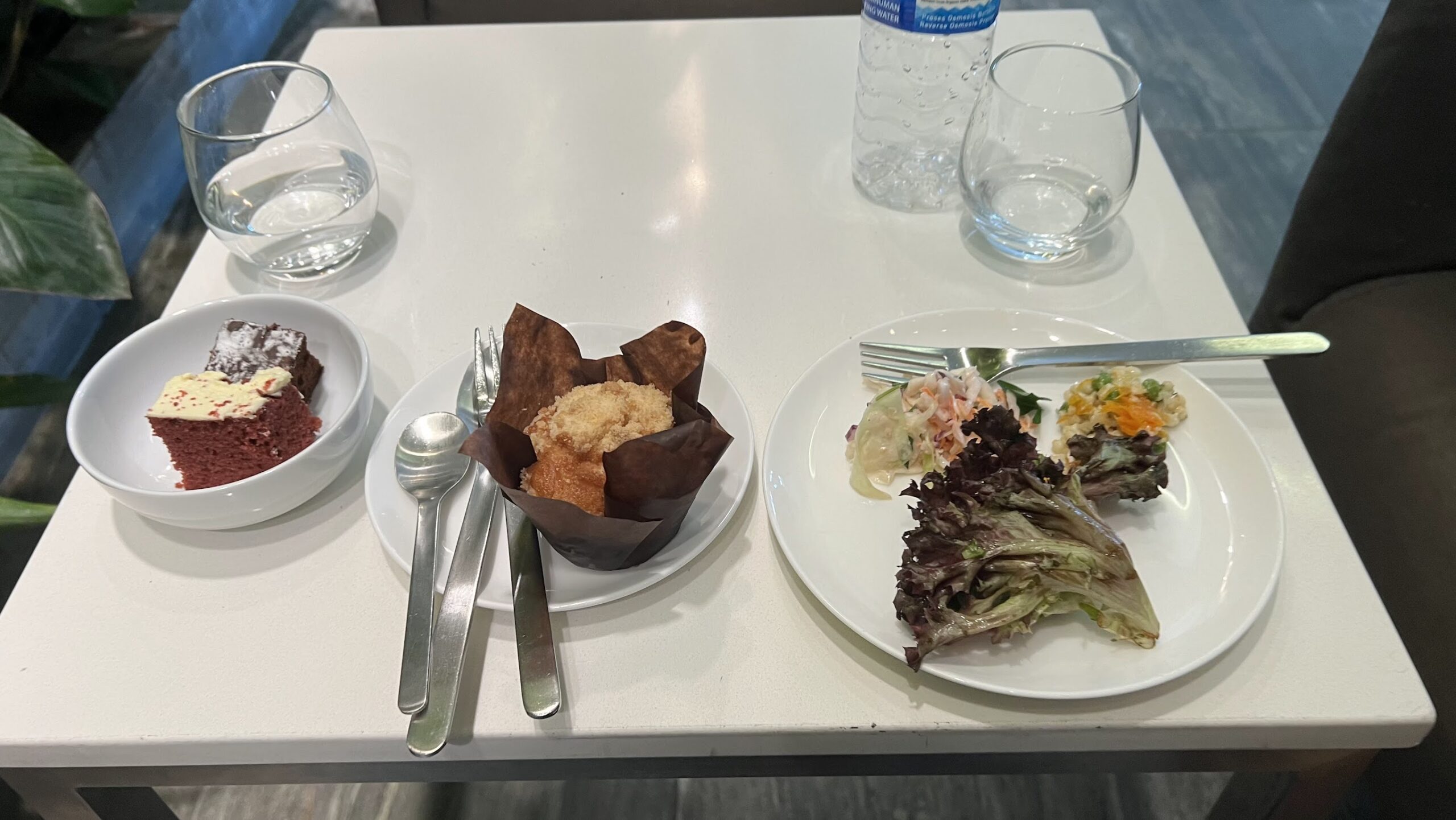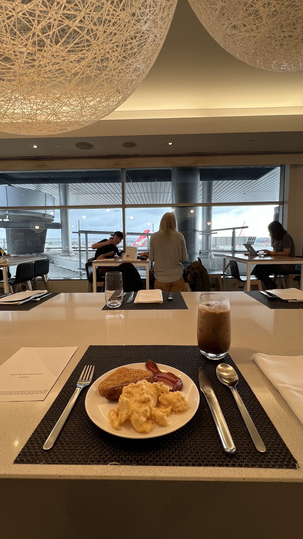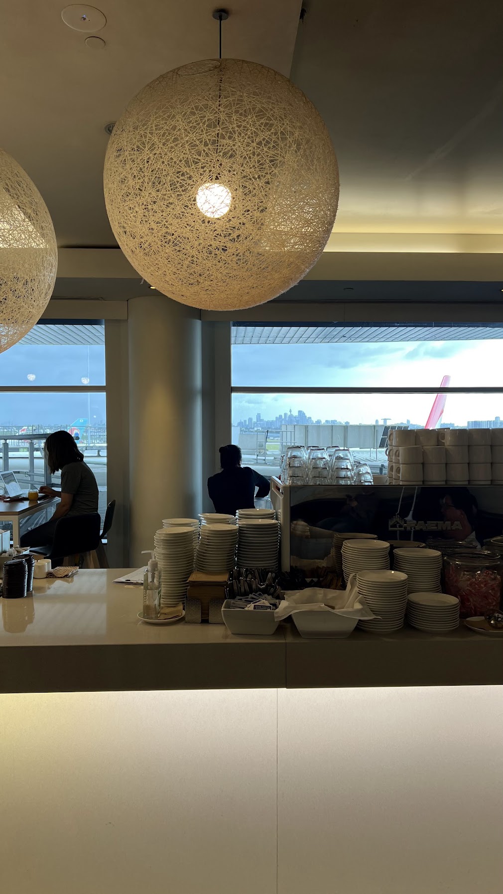 I wasn’t particularly into the croissant, so I grabbed food from the buffet and ate it in the central dining area. One plus is that the lounge has wide tarmac-facing panoramic windows, so at least you’ve got something to look at while you eat.