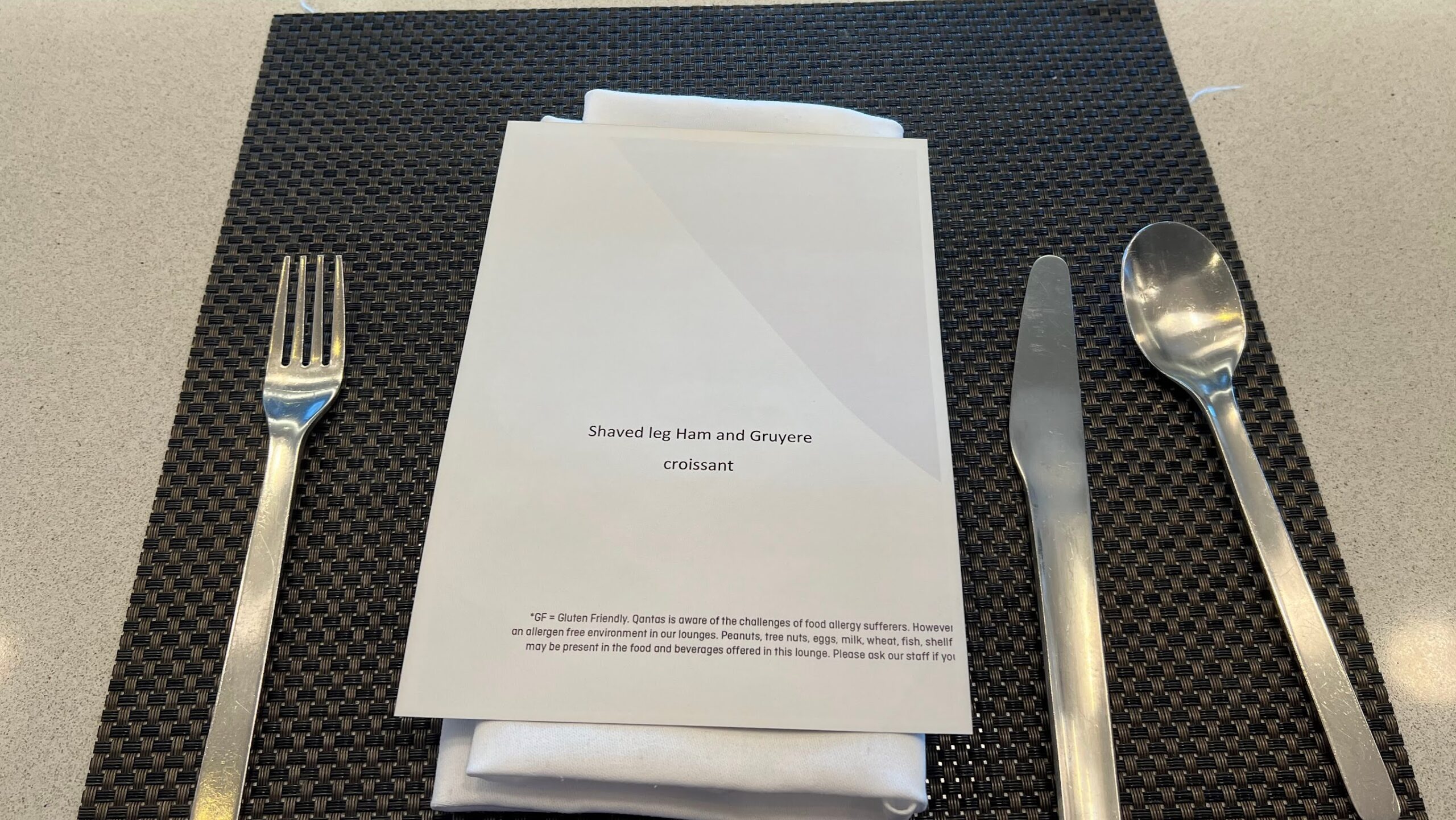 On our visit, the menu we were handed was very limited. The only item listed was a shaved leg ham and gruyère croissant.